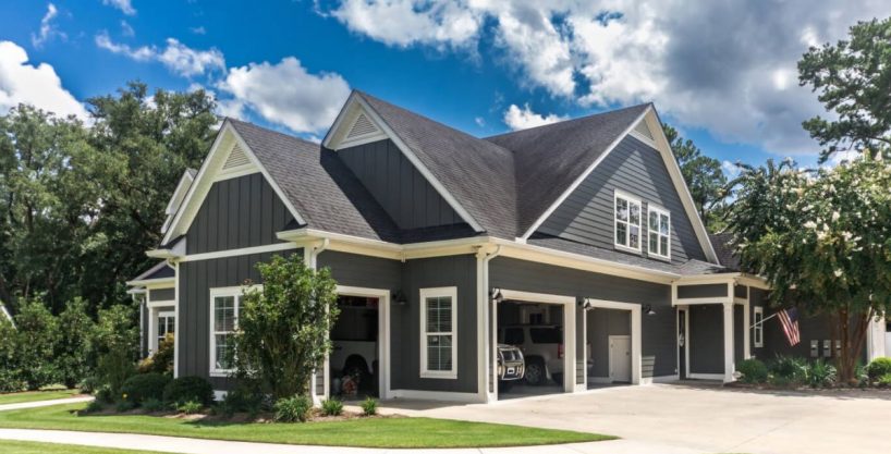 Dans cet appartement, le garage double dispose d’une porte d’entrée directe dans le logement, avec un placard à manteaux, des toilettes et une buanderie séparée à proximité.
